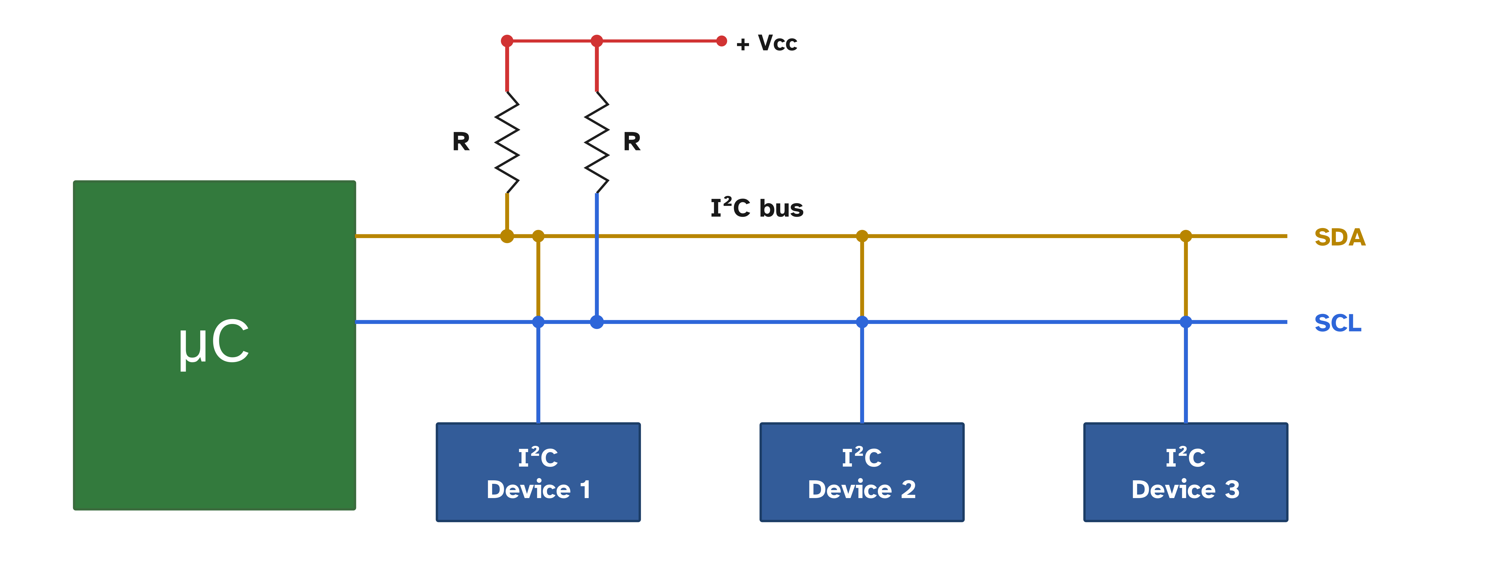 I2C (Inter-Integrated Circuit) is one of the most popular bus systems for connecting sensors to microcontrollers. It only needs two wires, SDA (data) and SCL (clock), yet it can support many devices all talking on the same bus. To use I²C effectively, it helps to understand how addressing, registers, and data transfer work.
