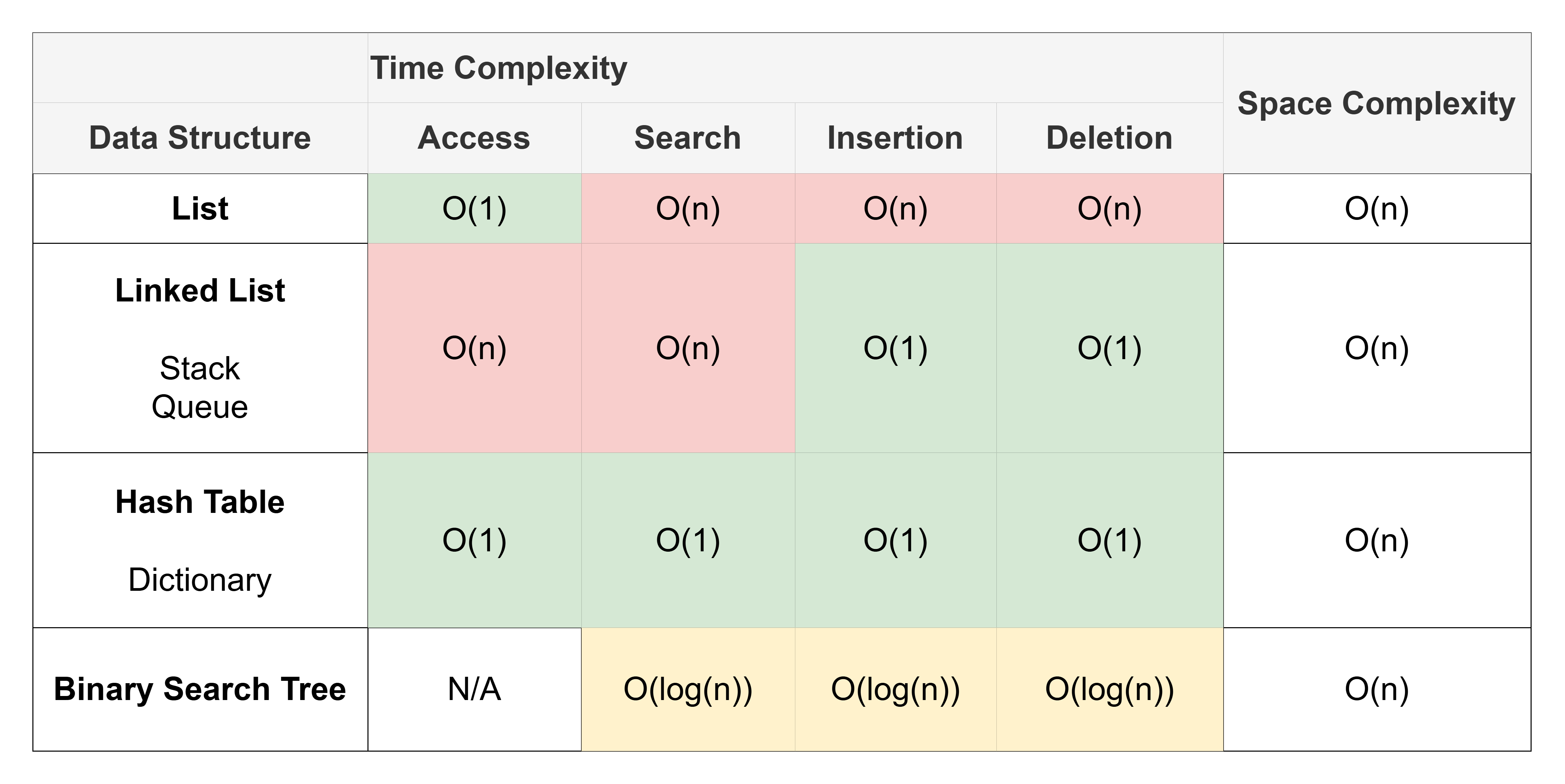 Each data structure we use as programmers has varying time and space complexities. As programmers we need to consider the programming problem and context we are working in, then choose appropriate data structures.