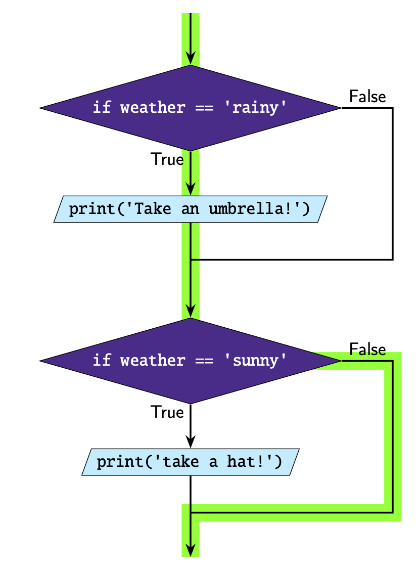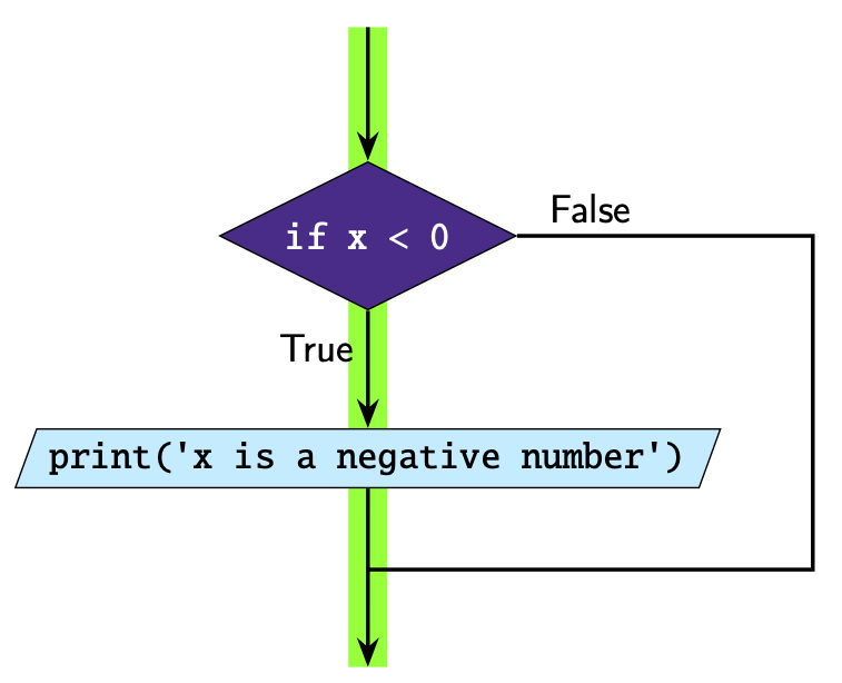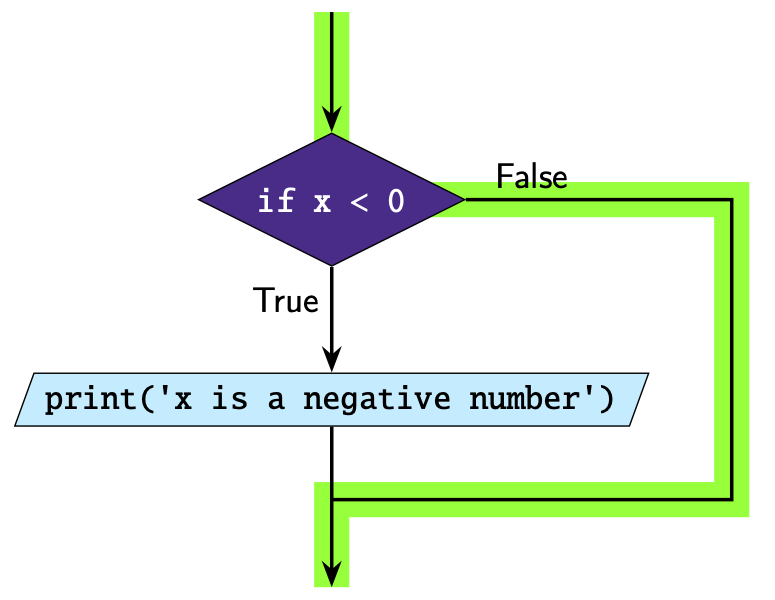 This is how we can represent this code diagrammatically. The green line indicates the ‘path’ the code takes.