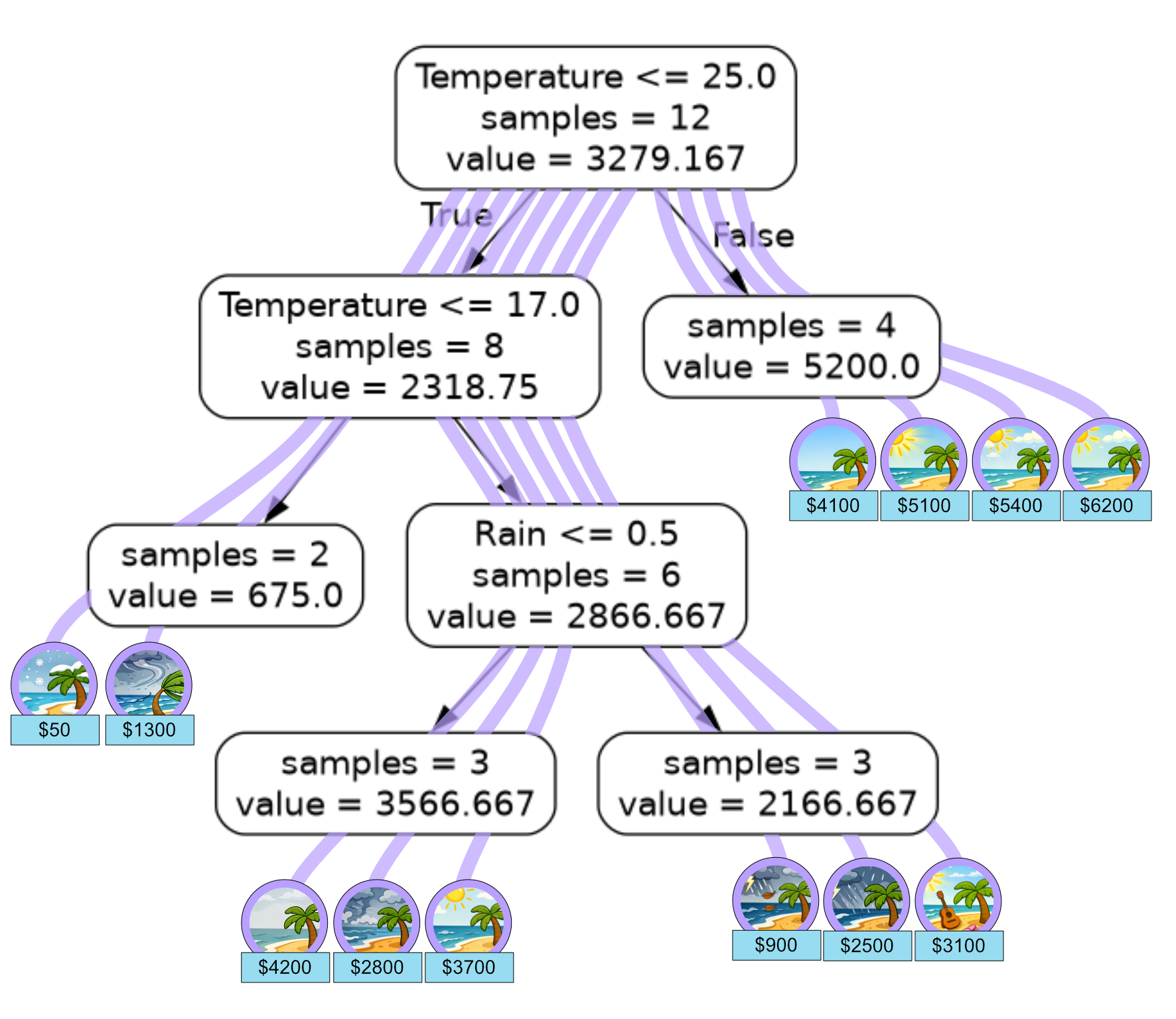 We can verify our models predictions by looking at how the test samples flow through our regression tree.