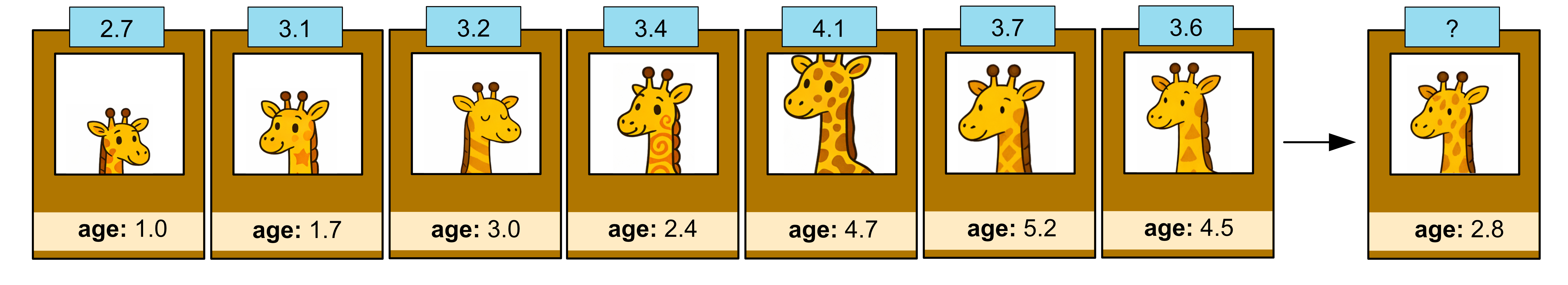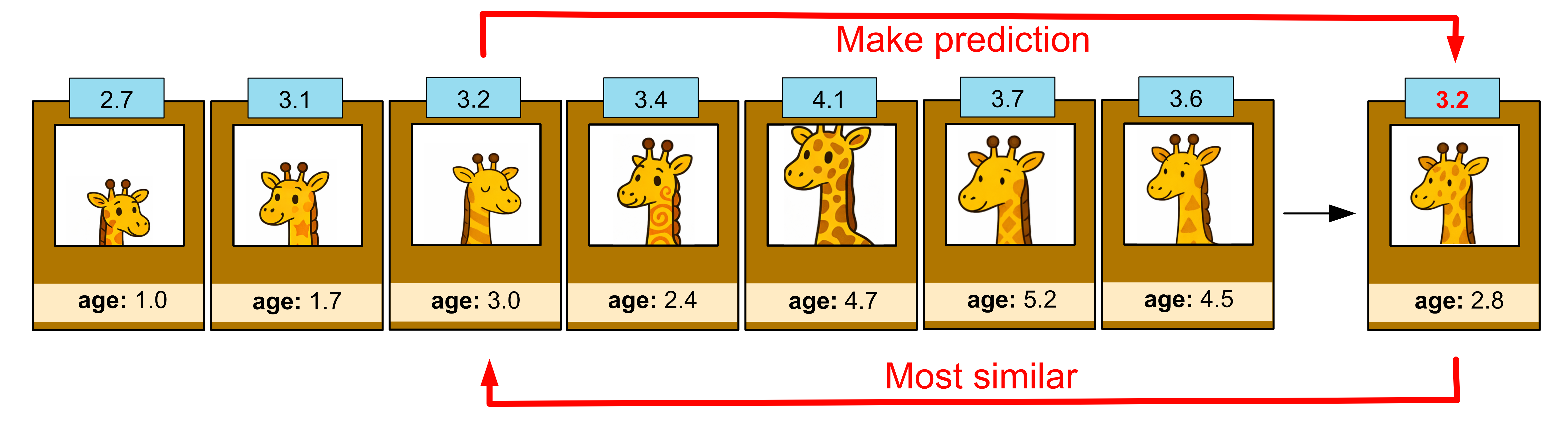This giraffe happens to have a height of 3.2m. Thus, we predict that our giraffe is 3.2m tall.