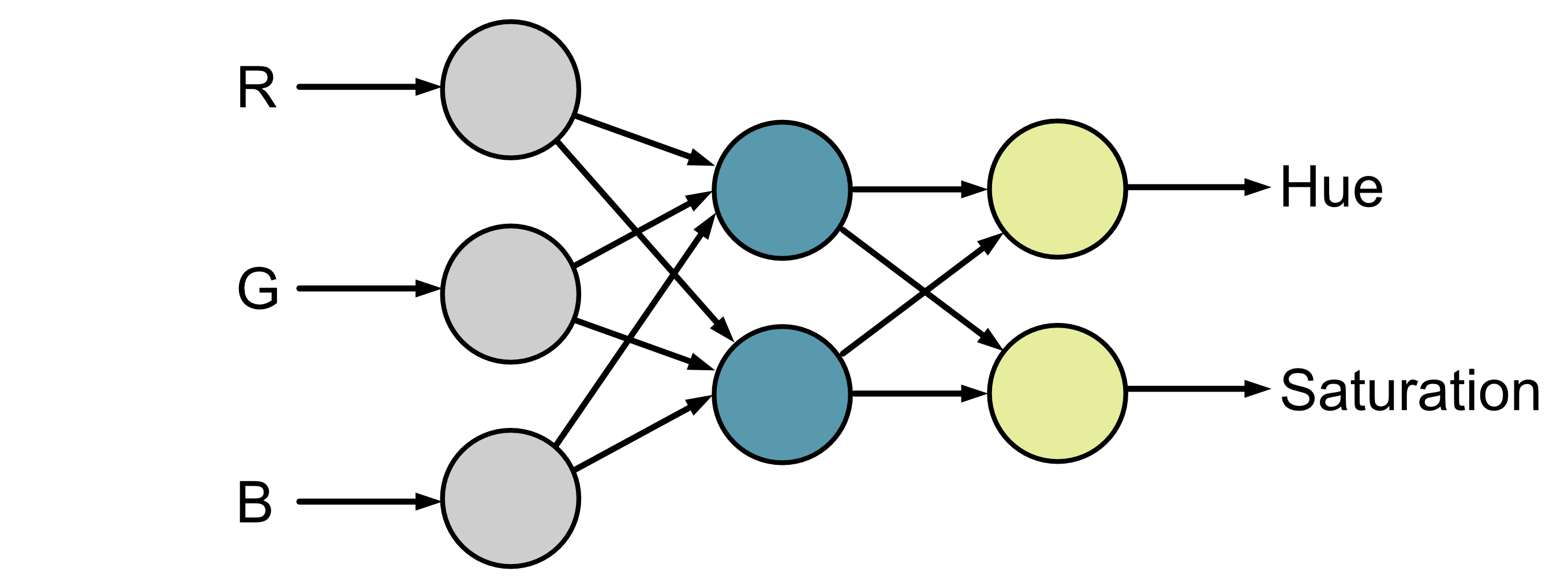 Again, it’s not quite correct. The network predicted a hue of 124.3 and a saturation of 38.8, but what we wanted was a huge of 235 and a saturation of 57.