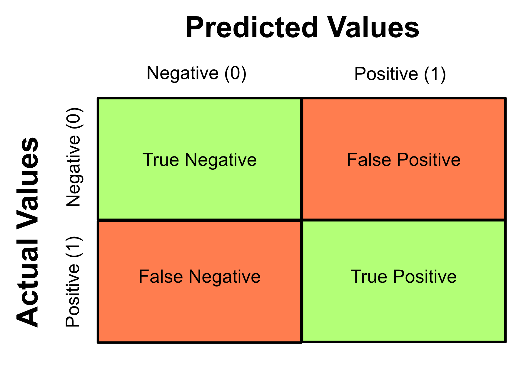 These values are represented visually by using them to construct a table called a confusion matrix. This matrix arranges the TP, TN, FP and FN values in the following way: