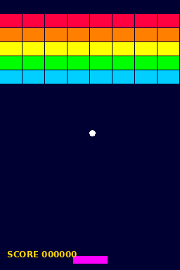 The objective of the game is to use the left and right arrow keys to move the platform and keep the ball in play. Each time the ball hits a brick, the brick breaks and you score points.