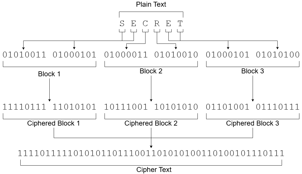 Modern encryption algorithms work by breaking the plain text into fixed size chunks called blocks. Each block is processed through the algorithm separately.