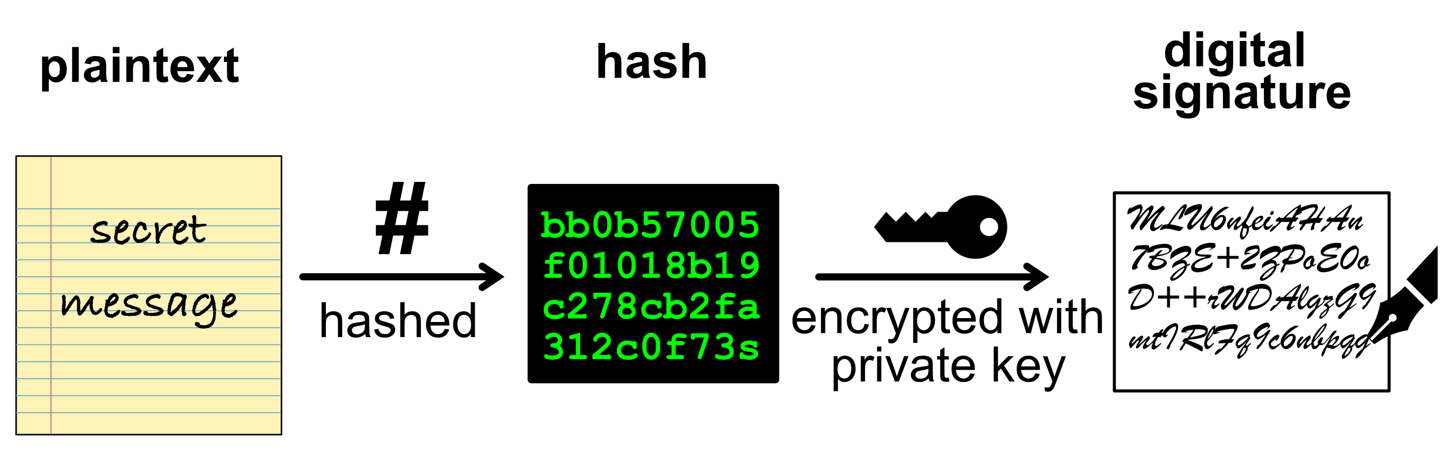 To get around this, we sign the hash, which uniquely identifies the data regardless of how many bits it occupies.