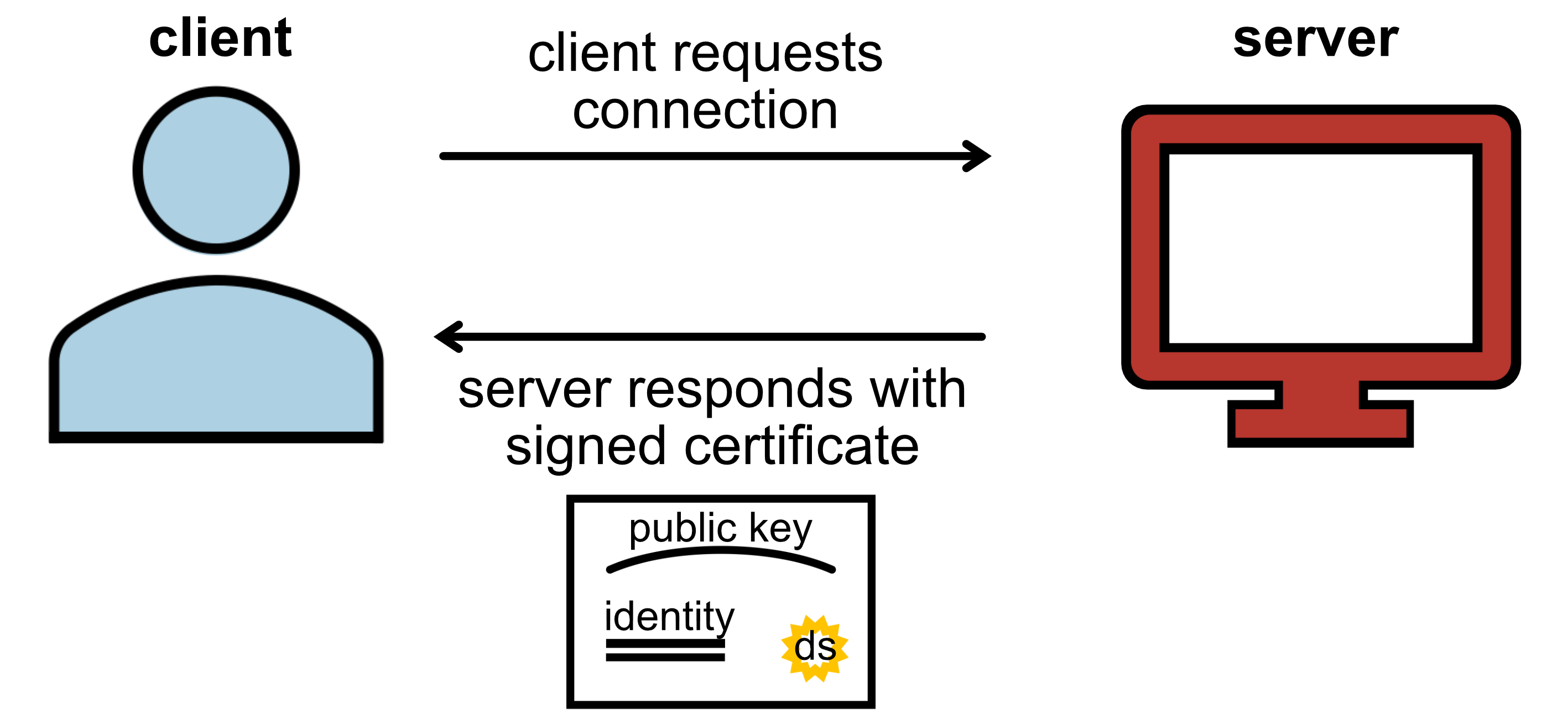 The server responds to the client with its certificate